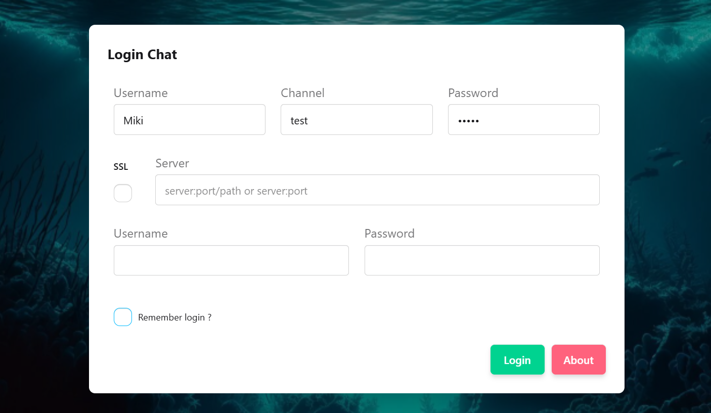 It is a secure chat that works only locally in the browser. All messages are AES encrypted locally. The transmission protocol is MQTT Broker as websocket wss. You can use the entered data to my server or enter your own broker as message broker.