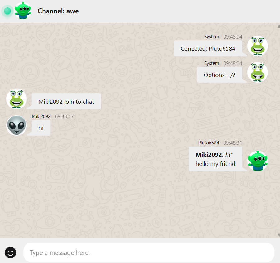 Multiple people can participate in one channel with the same password. People who connect with a different password will not receive messages from others, because the requirement is the same password. Then we get information about a potential intruder to know that someone is connected with an incorrect password.