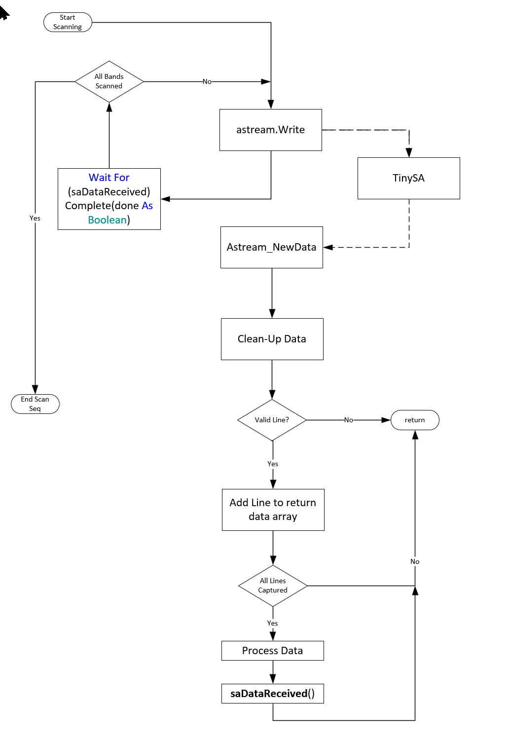 1. Send a "scan" command to the SA over the serial port AStream.write