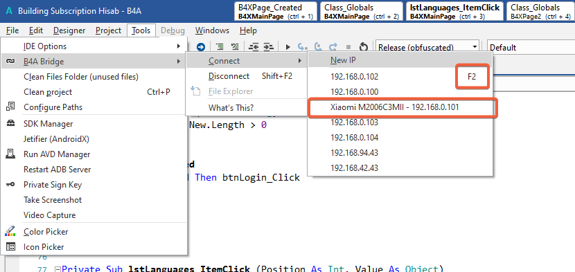 The problem is the ide F2 short cut remains at the last ip and not at the ip which it found the mobile connected in same wifi.