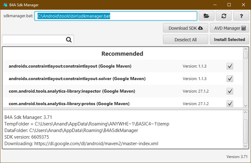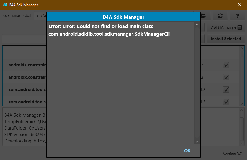 Since I understand that I should not run sdk manager as it will corrupt B4A so I need help here.