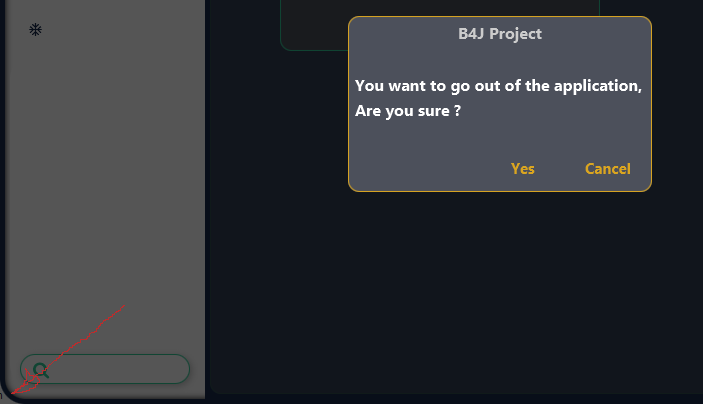 Wait For (Dialog.Show($"You want to go out of the application, Are you sure ?"$,"Yes","","Cancel")) Complete (Resp As Int)