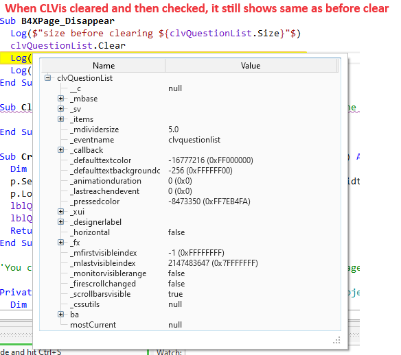 2. Even after clearing all the items using CLV.Clear, this shows.