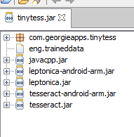 tesseract's english data file is called eng.traineddata. i simply dragged it into the jar. somebody asked about a problem similar to yours way back sometime.