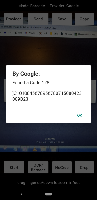 "mybytes" is the byte array returned from the inline java code that holds the relative width of each bar/space