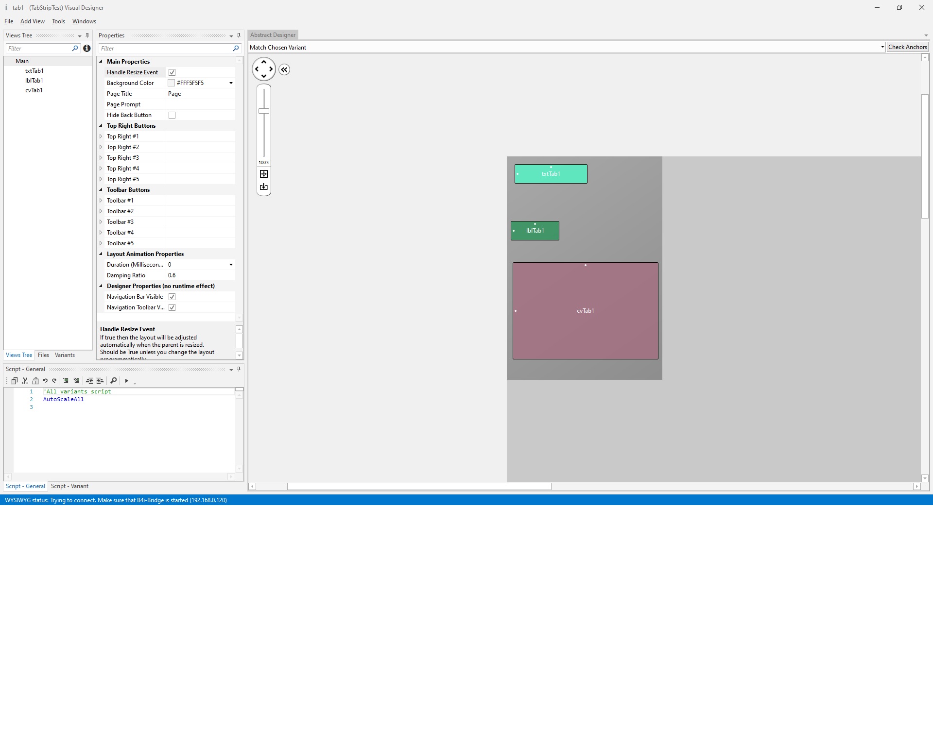 I have a problem. I'm using B4xTabStrip with 3 pages. Each page contains a label, a textfield and customlistview. Each CLV contains B4xSwithes a labels.