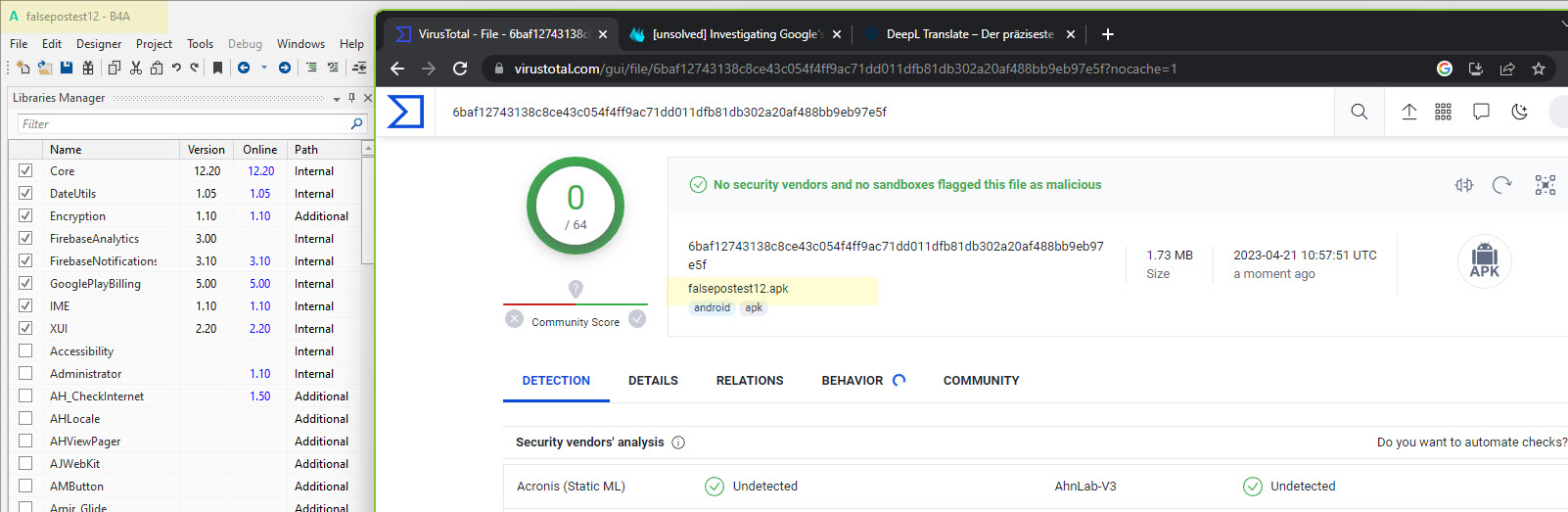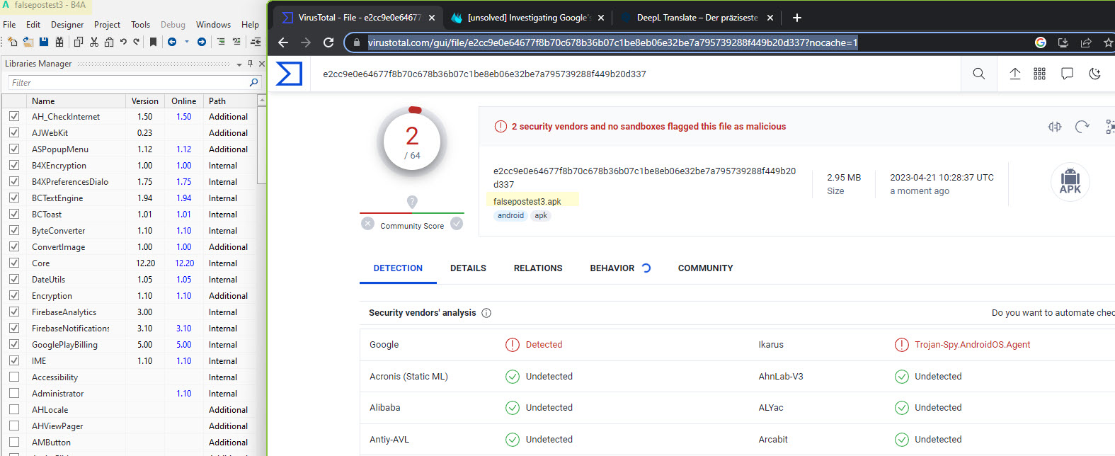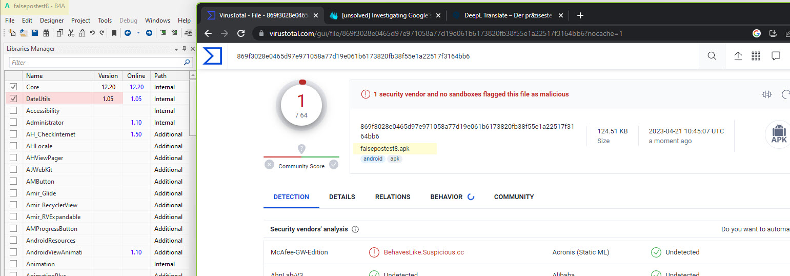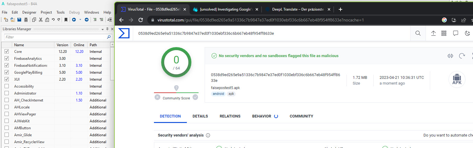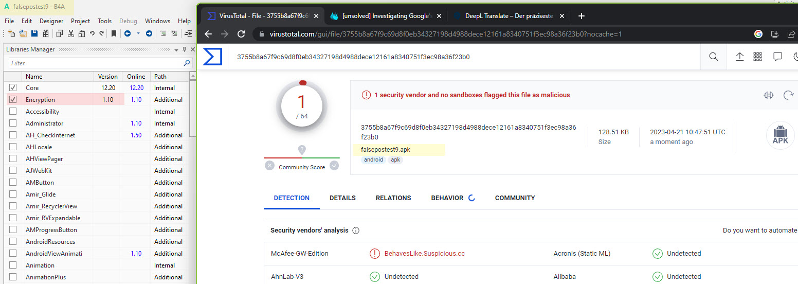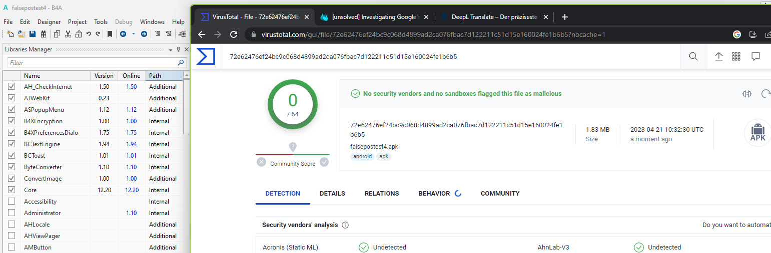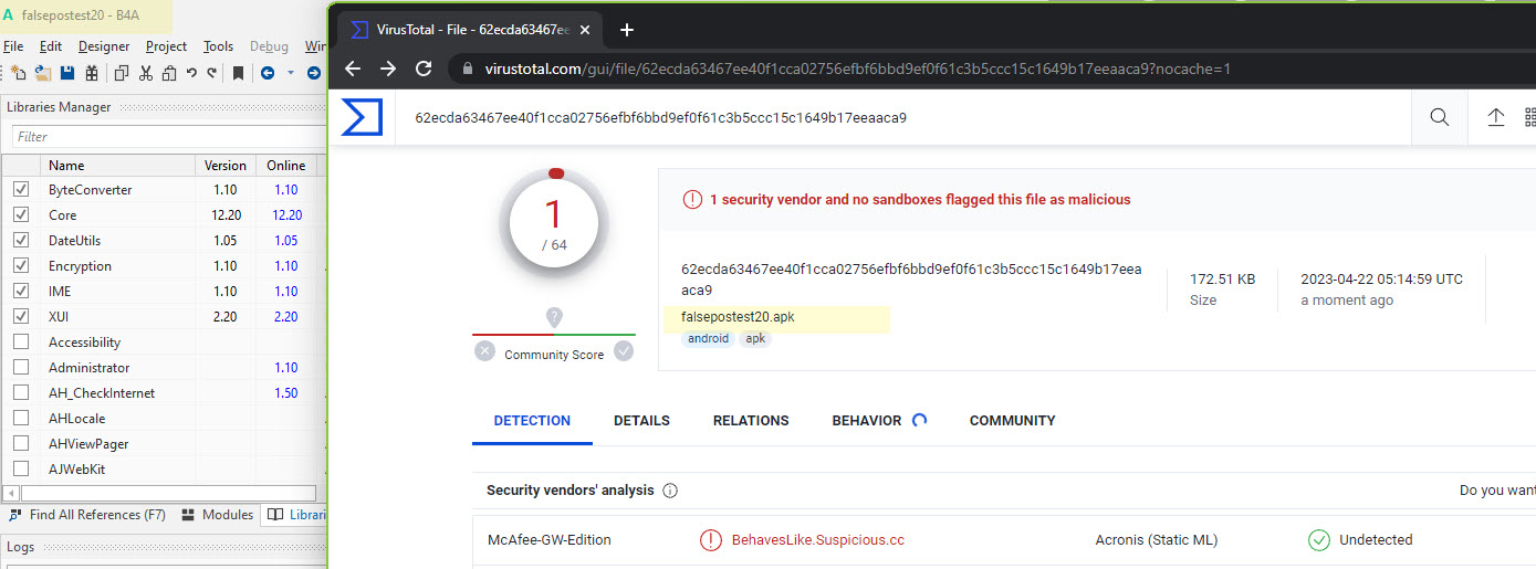 This is a continuation of: https://www.b4x.com/android/forum/t...-as-virus-false-positives.147513/#post-935210
