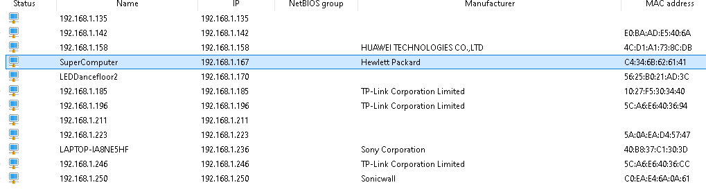 eg , this is one of my internal subnets at home using Advanced IP scanner