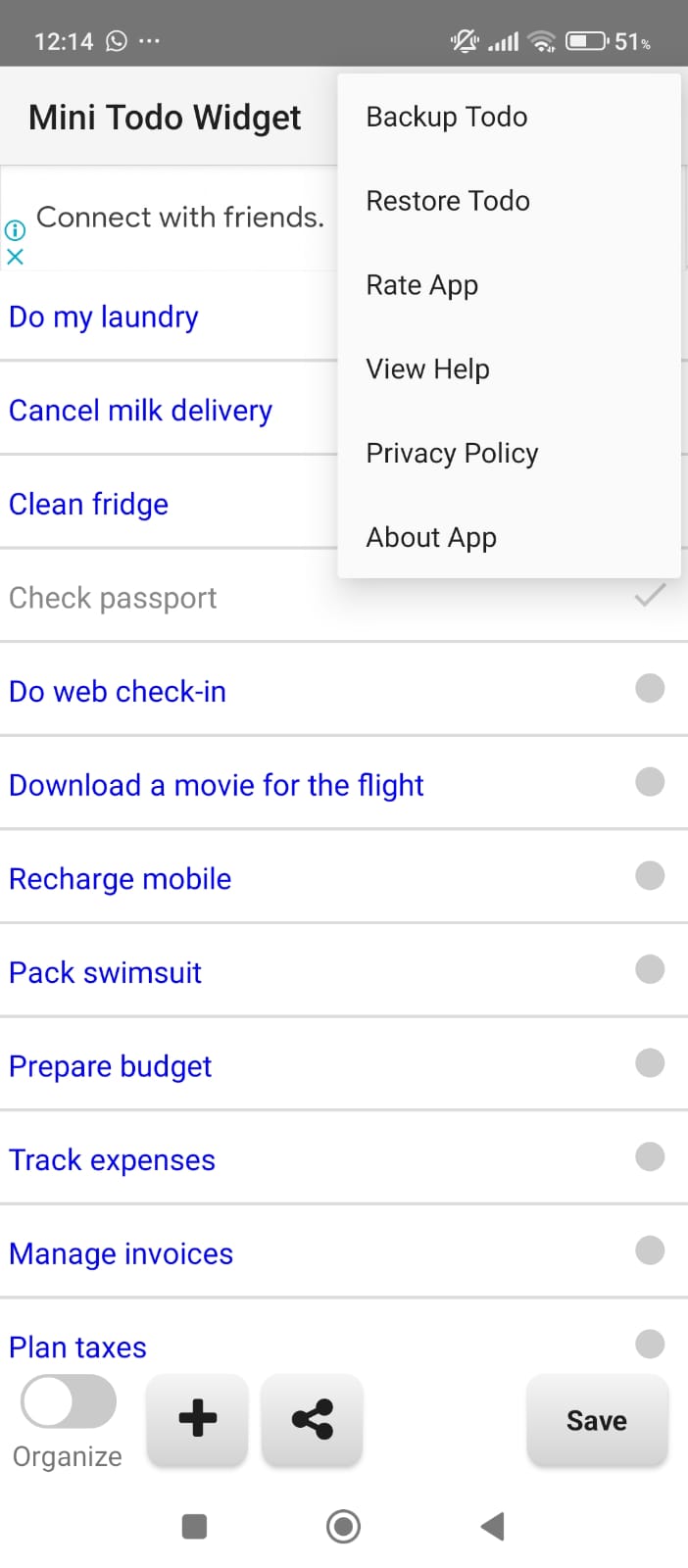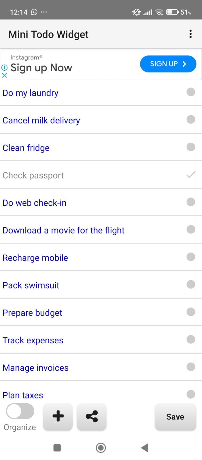 Mini Todo List with resizable widget. Organize and view on home screen.