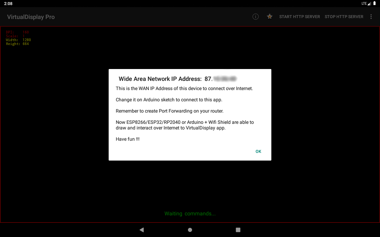 The request always return the IP address without problems, but after I get it I want to add it to a menu item so the user can see and click on it.