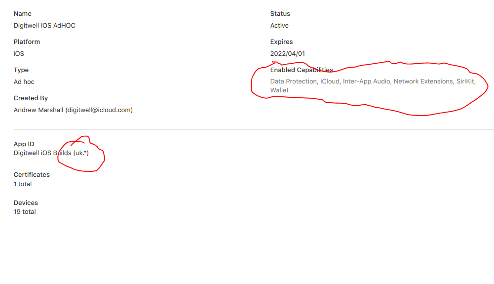 error: Provisioning profile "Provision*******Notifications" doesn't include signing certificate "iPhone Developer: ***** ********** (LM67JX24XU)". (in target 'B4iProject' from project 'B4iProject')