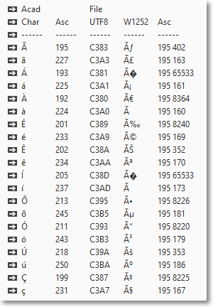 The Portuguese characters DXF file is using UTF-8 for the line of letter e's with various accent marks.