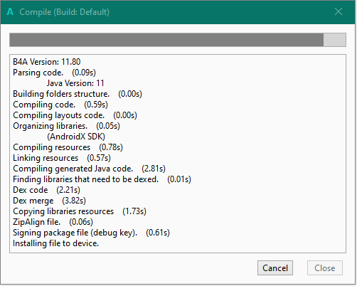 i use b4a version 11.80 but when i compile my project, it stuck on installing to device. hardly ever it works correctly.