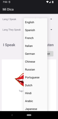 so, here is Mi Dica. it's a combination of erel's voice recognition example plus my groundbreaking work on MLKit using b4a as a driver. speak in your device's default language (or change it to something else if you like), have it translated into some language spoken by a person you want to talk to, and have the device speak your utterance in their language.