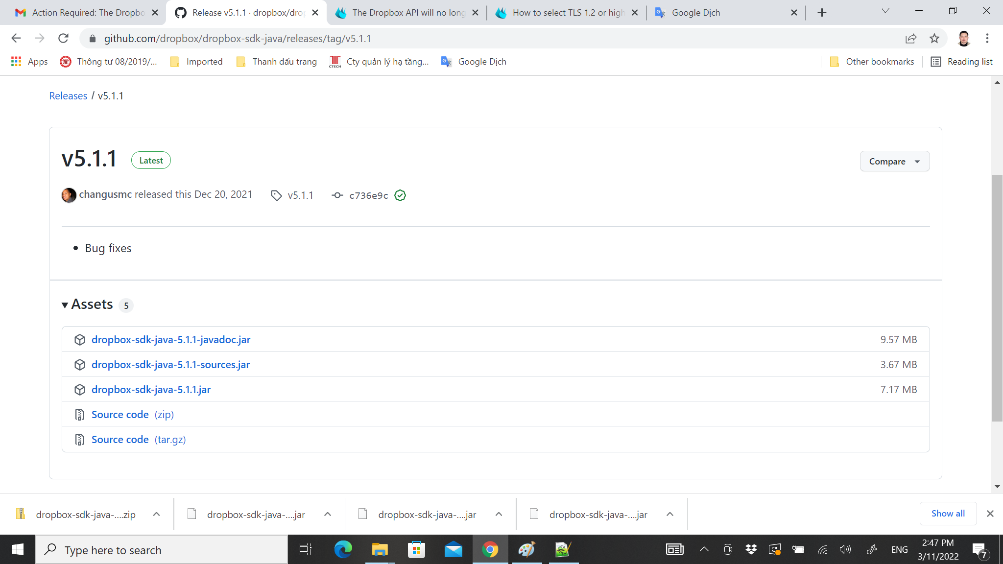 Beginning on or after April 13, the Dropbox API will require that calls use TLS 1.2 or greater. Traffic using TLS 1.0 or 1.1 will be rejected.