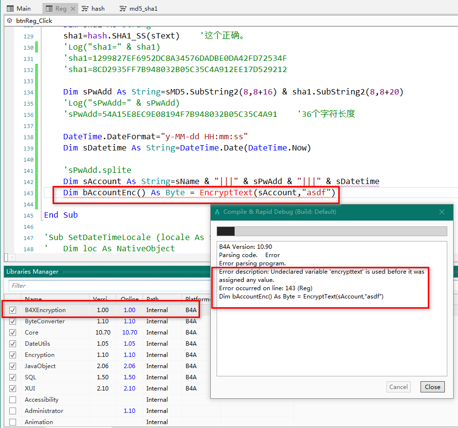 Error description: Undeclared variable 'encrypttext' is used before it was assigned any value.
