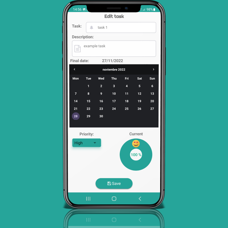 - You can assign a priority to the task and it will be assigned a color according to its priority level