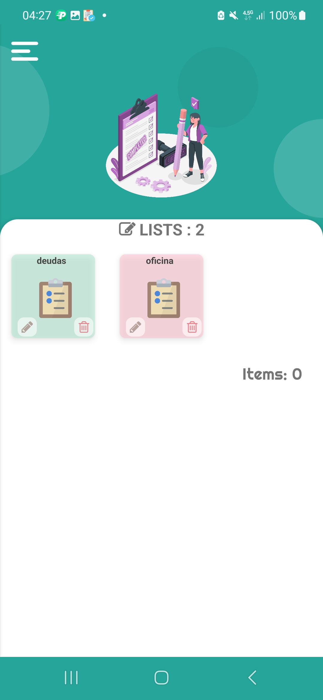 - Create lists, edit and delete all list items or the entire list