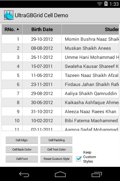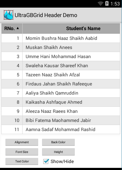 - First column can stay fixed while scrolling horizontally. - Selection Handling