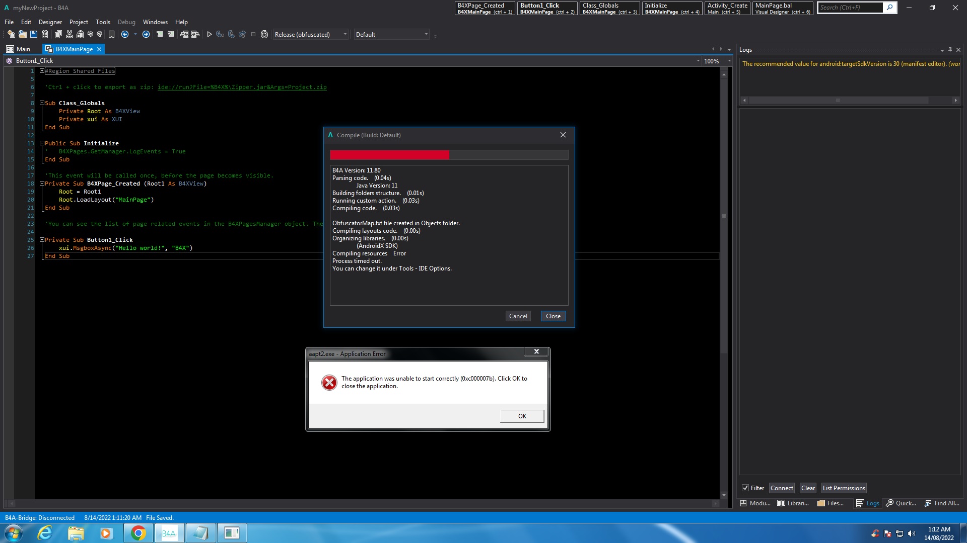 But when I compile an app, it gives error saying aapt2.exe unable to start..(see screenshot).