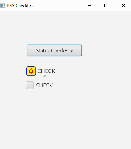 Pronto publicare un checkbox de vista personalizada para B4A, B4J y B4I, con muchas opciones de apariencias y animación personalizables. no utiliza imagenes solo IconFont. (para poder cambiar tamaño, color, color de fondo, agregar texto, animaciones, etc) dejo un ejemplo: Coloreado en Azul: