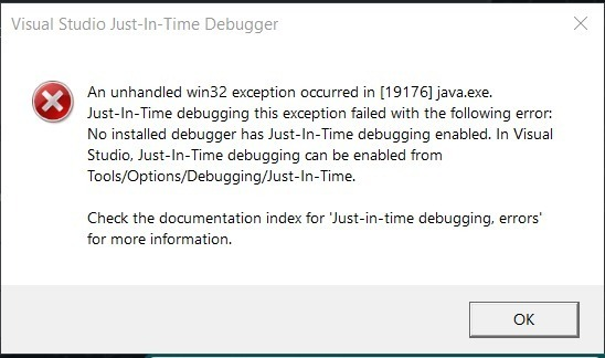 I'm having a problem when running my application that only contains a webview, if I leave it minimized for a certain time, Java Crashes and when I click on debug, this problem occurs, is there any solution for that?