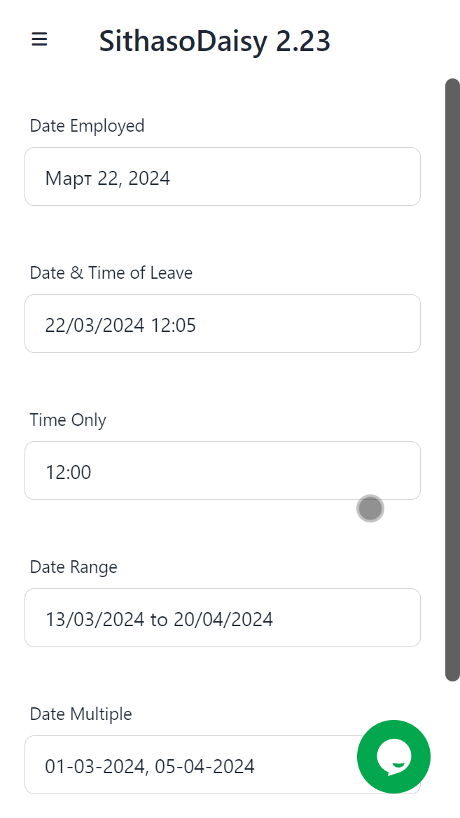 For more examples see the demo app, Form Controls - Code > FlatPicker Date