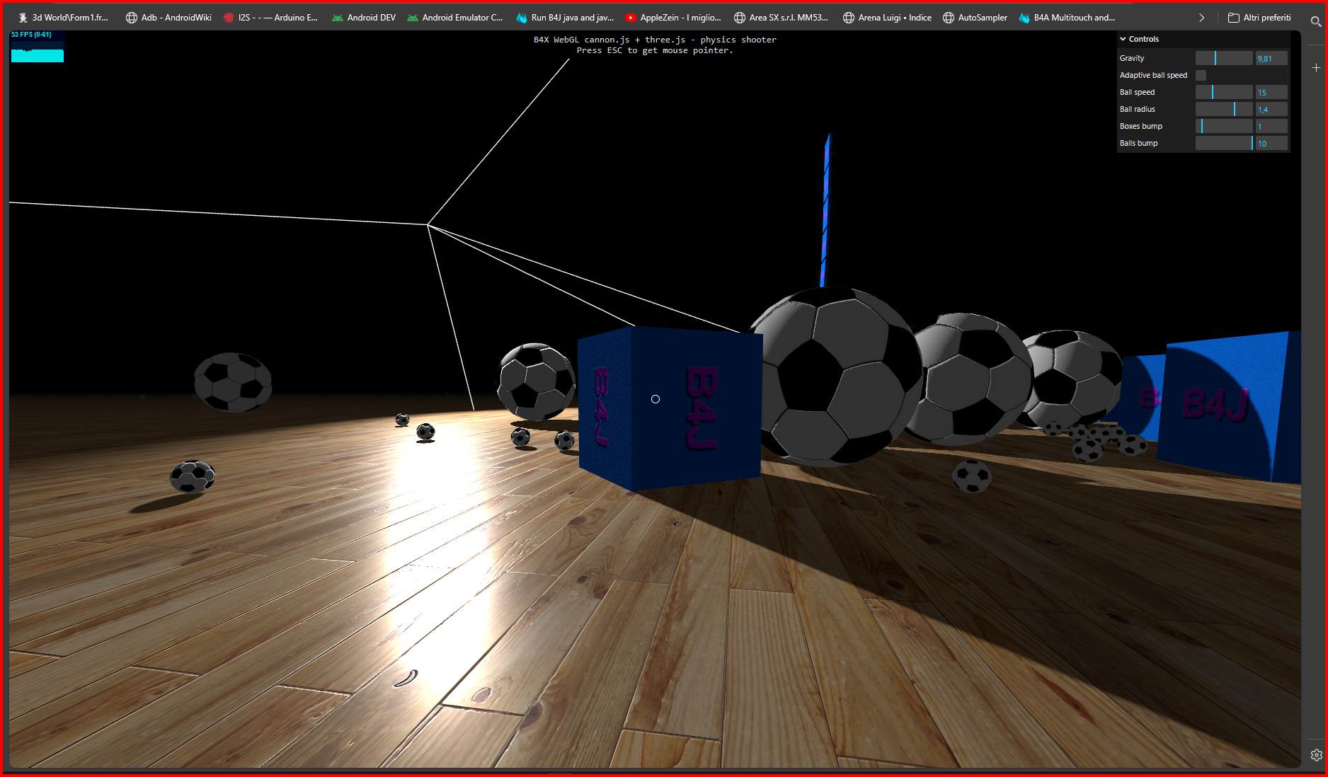 here a simple shooter game using B4J WebGL libary and cannon.js physic engine.