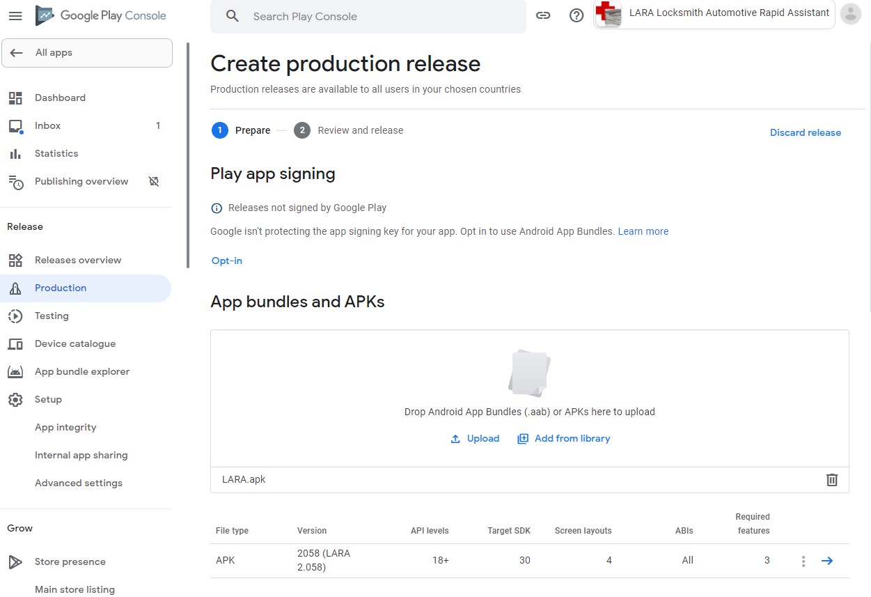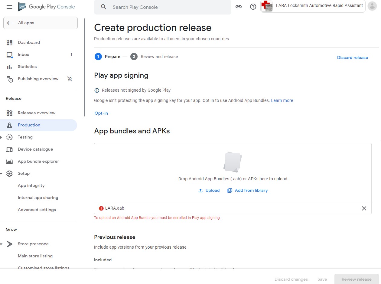 If it is not successful, I want to suggest you compile NORMAL APK AND UPLOAD for now. Then we can try the aab after that.