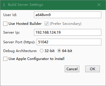 4. I set the builder IP address in the IDE under Tools - Build Server - Server Settings (my VMware macos ip 192.168.124.19)