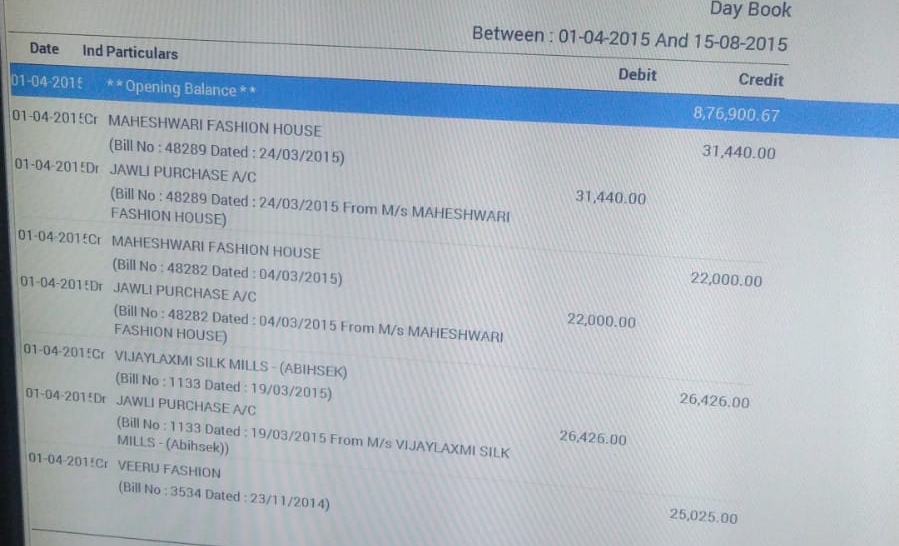Report starts opening balance with given period. it will show transactions between period from and to date and the fields are voucherdate, particulars, debit and credit amount. before next day transactions start total the debit and credit amount and show the total and then balance amount show next day opening balance. This report is able to share via email or able to printable format.