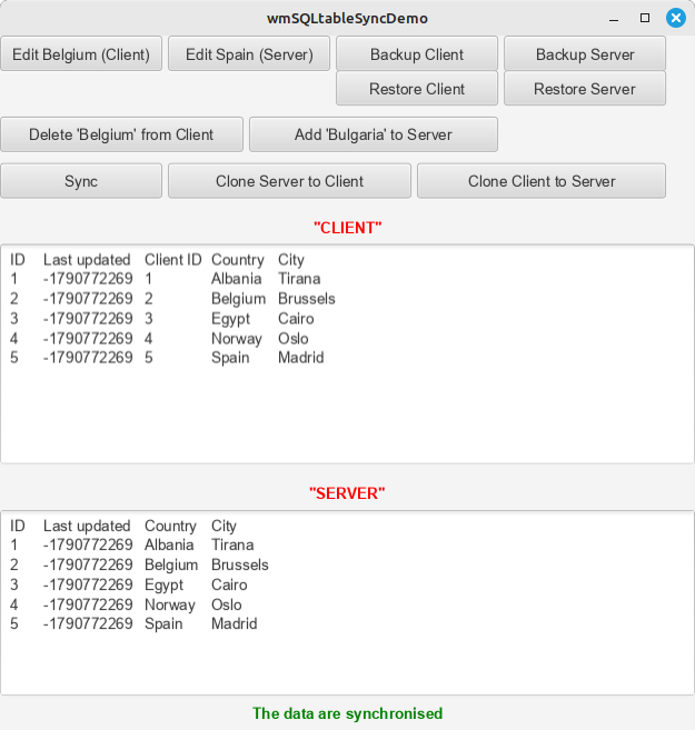- CloneServerToClient: empties the Client table and loads all Server table data into it