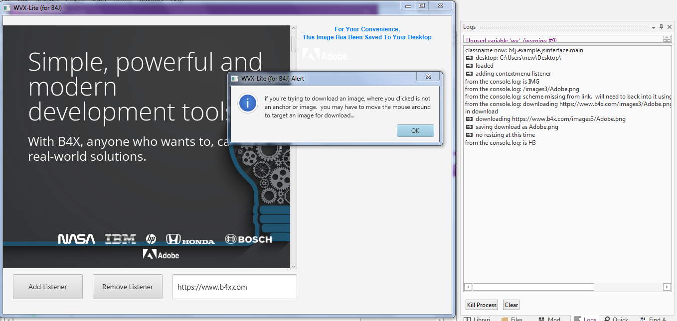 2) standard right click on b4x.com "nasa" image. (screen cap doesn't show where the cursor clicked)