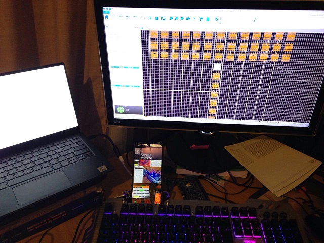 I bought a flexible tripod from Amazon a couple of weeks ago for my Android phone and discovered it works great when developing apps. I have always preferred using the Android emulator for testing apps because it leaves my both of my hands free for typing. That changed when I bought my flexible tripod. These tripods only stand about a foot tall and the legs can be bent in a variety of shapes to hook on branches or the back of chairs. These tripods are also great to get the phone to stand up on the desk so I don't have to keep picking it up in order to use it. I can have hands free operation of the phone, apart from clicking a few buttons or swiping when I need to. I always know where my phone is on my desk because its there staring at me. If I can't find my phone now, it means my desk needs cleaning because I would have to have a pile more than 2' high on the desk in order to hide the tripod and camera.