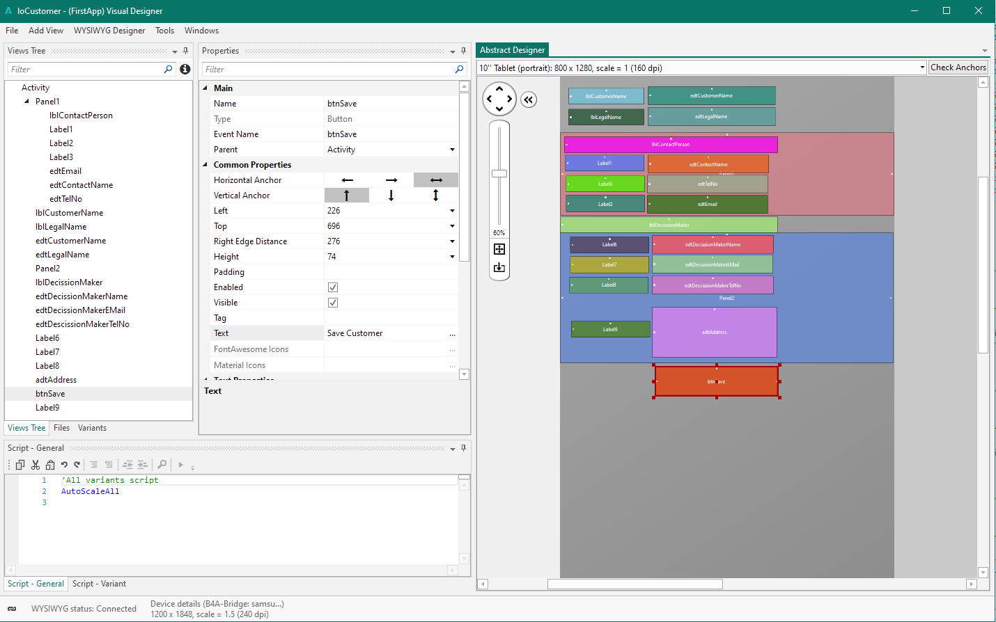 When designing the Layouts/Screens, the screen does not fill the space for the target device I have set.