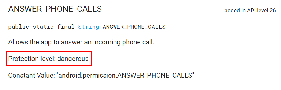For Android 8+ device, I just insert the permission "android.permission.ANSWER_PHONE_CALLS" in Manifest file . Is it right ? ( no need Runtime Permission )