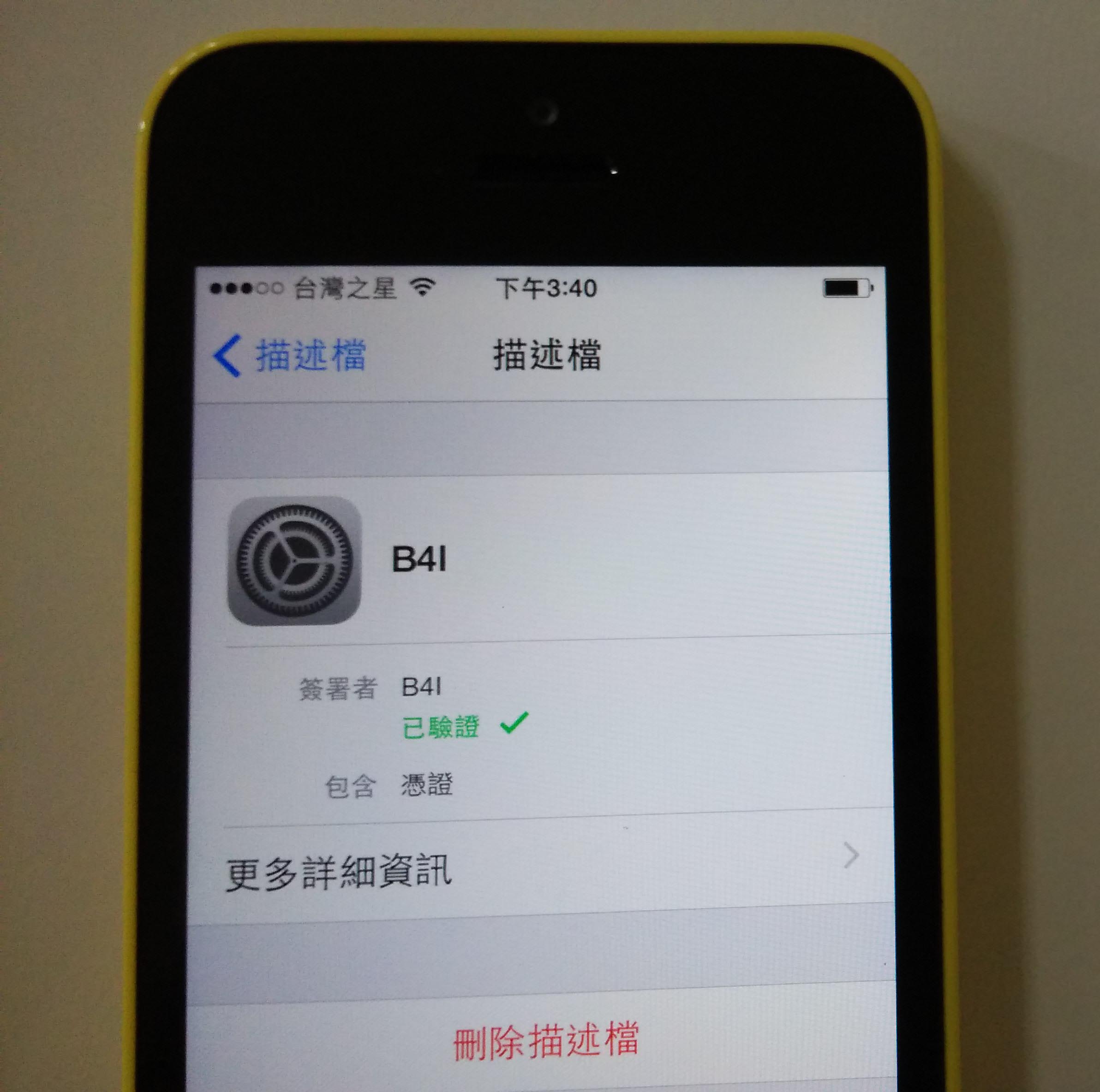 1. Make sure that the B4I certificate is installed. You can check it under Settings - General - Profile: