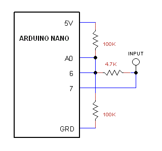 Input is DC or AC not acceding 5V. The Analogue Comparator of the mc (pins 6, 7) is used to detect zero crossing of input signal, it triggers start of sampling a frame when signal is rising.