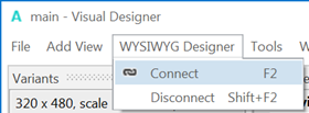 The abstract designer only shows an "abstract" view of the layout. You need to connect to the device (press on F2) to start the WYSIWYG designer.