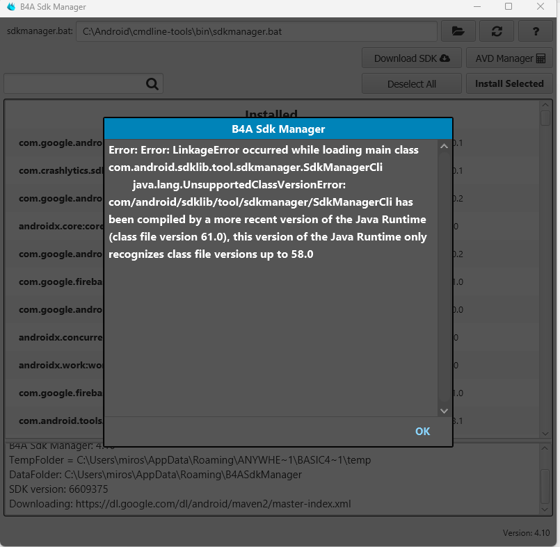 Android Question B4A SDK Manager not working