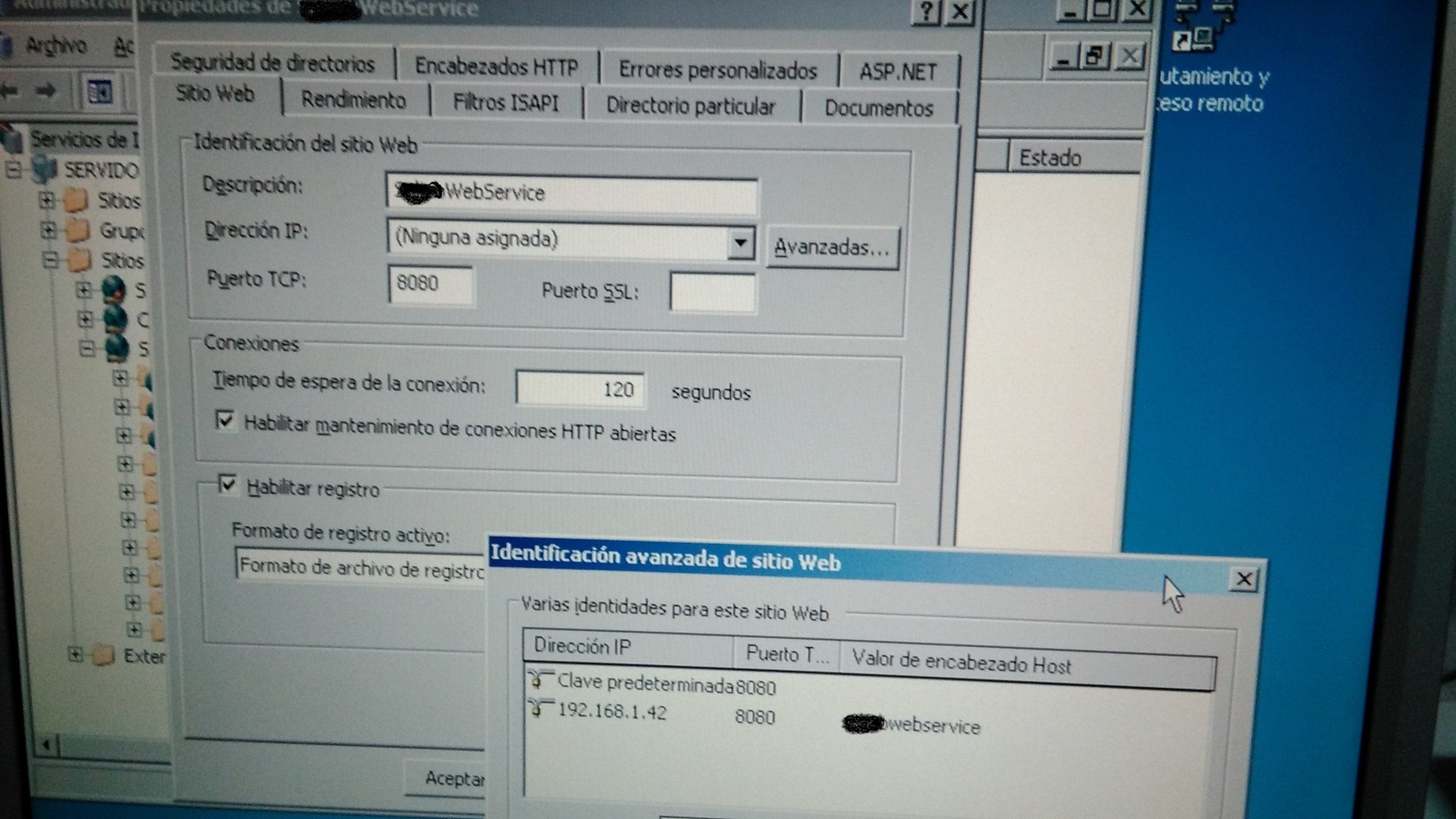 Esto es en un servidor windows server 2003 (un poco antiguo) en el que se le indica que el webservice se llama atraves del puerto 8080, pero funciona correctamente.