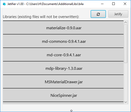 • Jetifier tool that creates AndroidX versions of libraries. Note that this step isn't needed for most libraries.