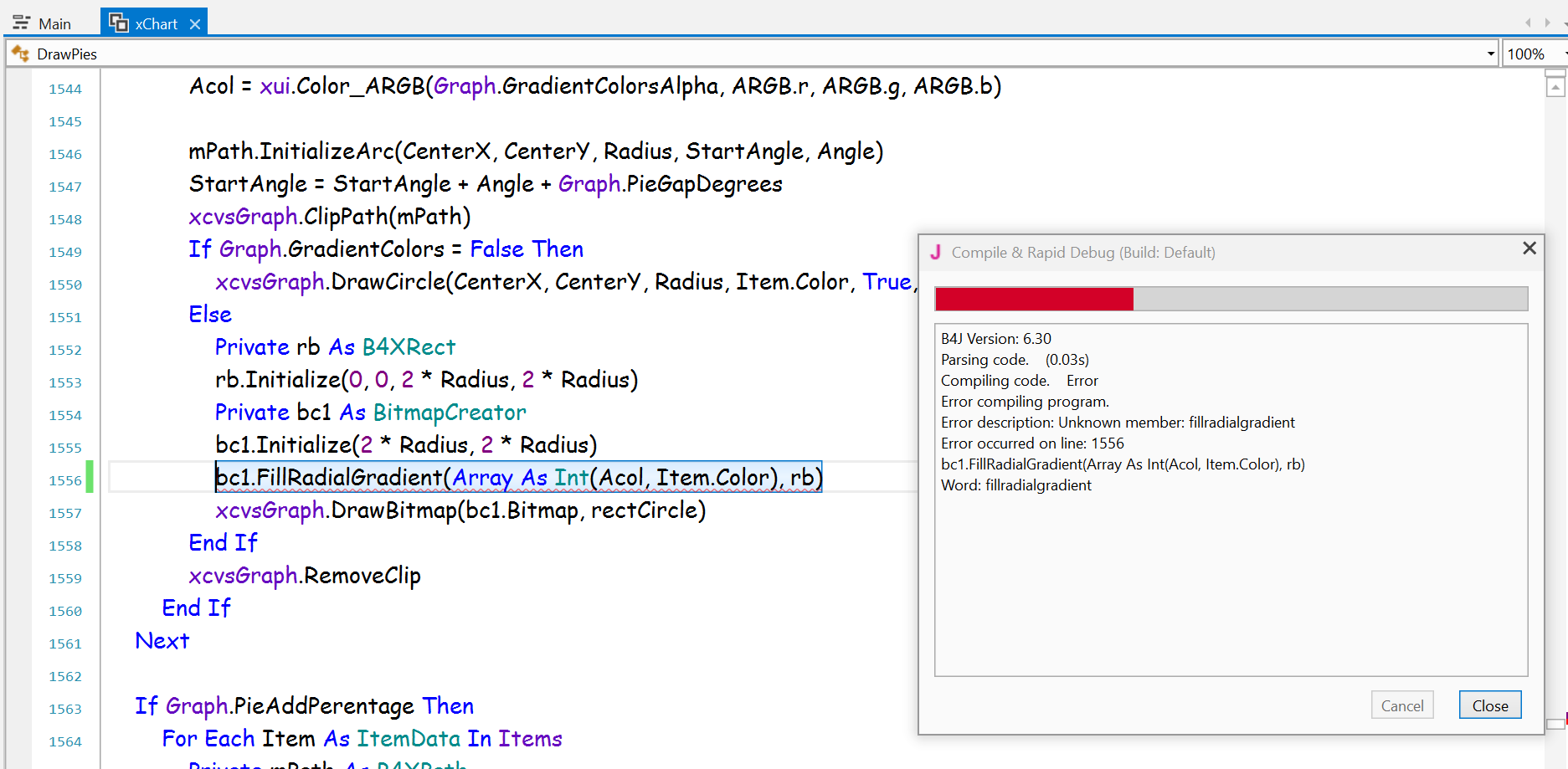 Error description: Unknown member: fillradialgradient