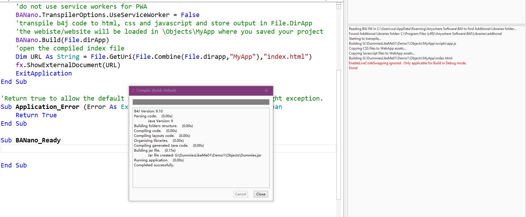 I'm a newer for banano. I download dummiesLikeMe01 project, delete the code in BANano_ready, then run it. the browser still show the text: Hello Alain Bailleul. I open the app.js, It not be changed!