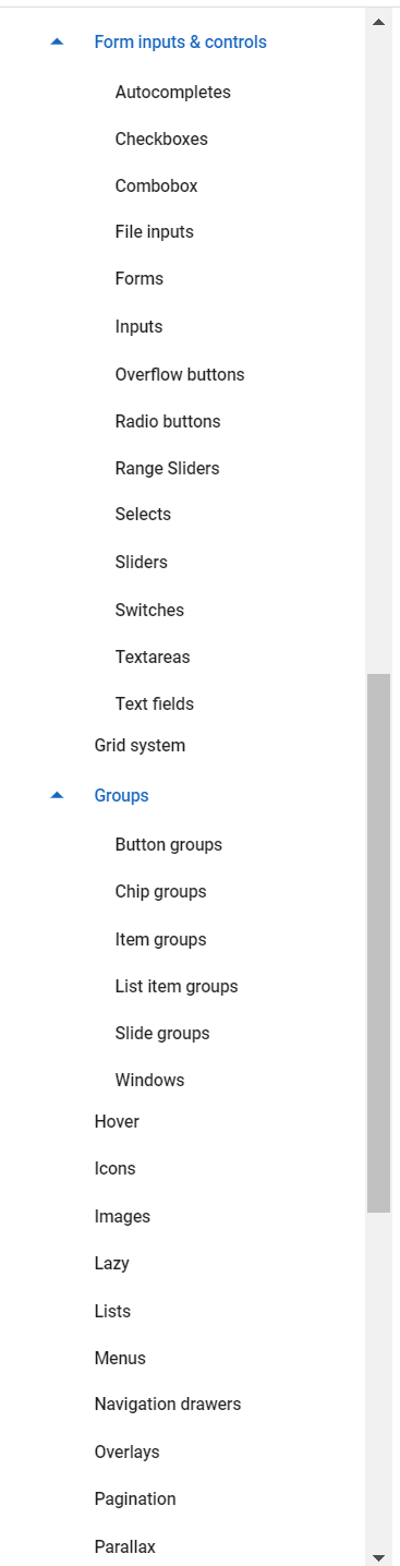 For the Vuetify Core, I see the list is sorted by alphabetical order. Can you (maybe another drop down) make the list group by type?
