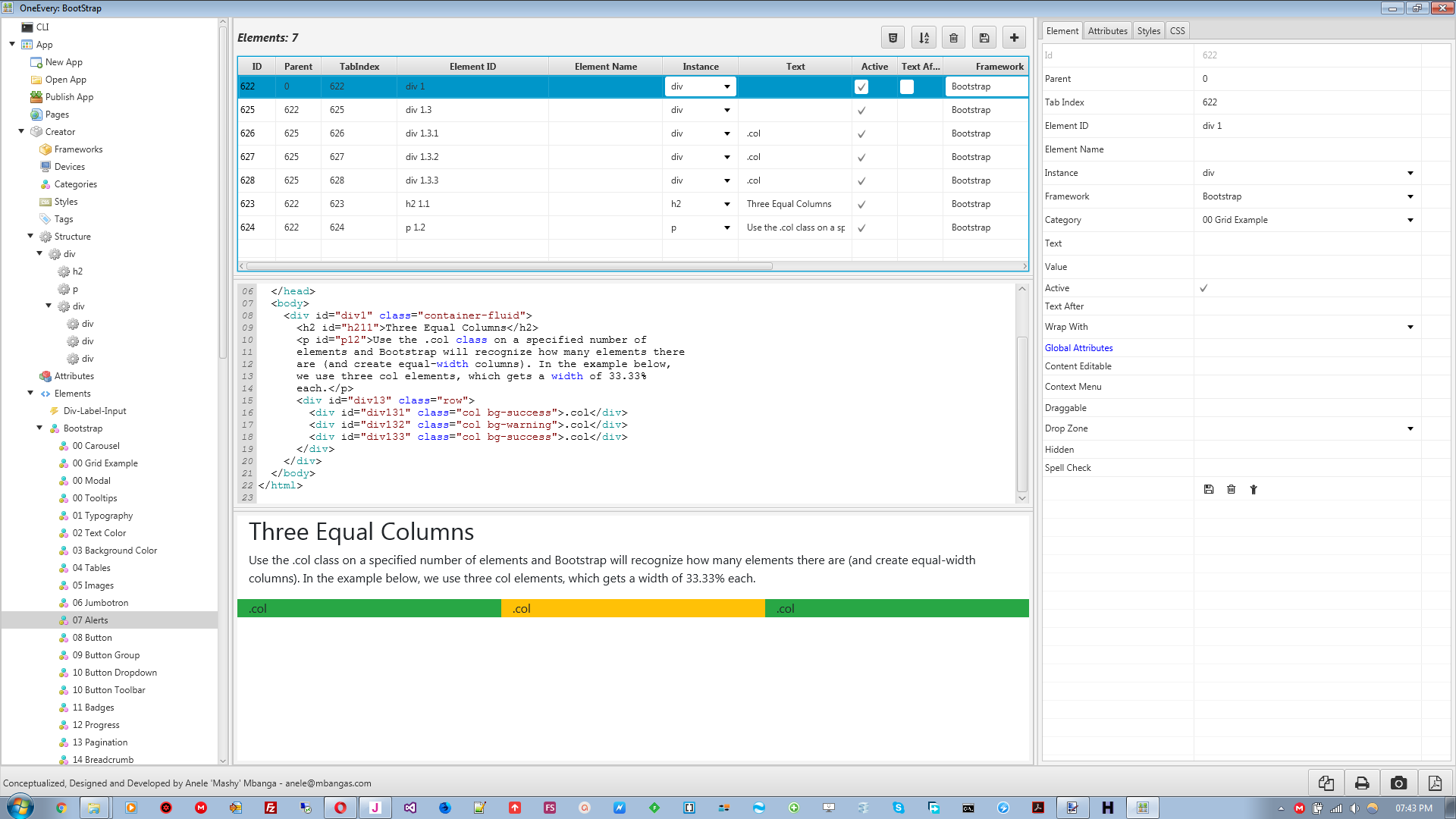 Well with some clicking here and there and changing this and that, you get HTML source code depending on what you want to create. A parent child relationship is also maintained for the various child relationships, e.g. divs hosting other divs.