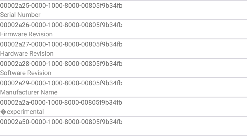 Service = 0000180a-0000-1000-8000-00805f9b34fb