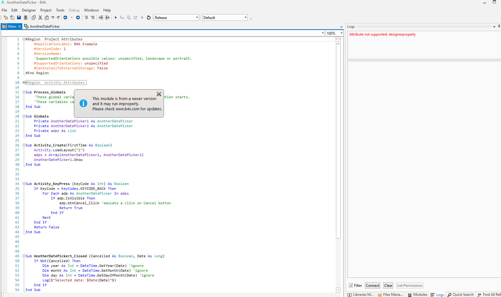 at b4a.example.anotherdatepicker._addtoactivity(anotherdatepicker.java:146)