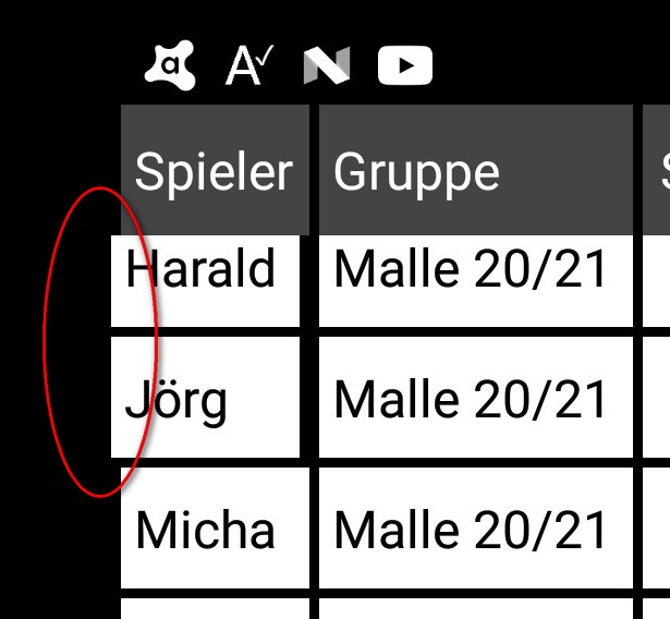 But, working with TTF fonts is currently not the problem. My problem is (or better was now!) that I could see an empty column after hiding it. So, I check the original code and I could see that the developer was working with a width of min. 2dip! Now I changed it to 0dip with empty header texts.