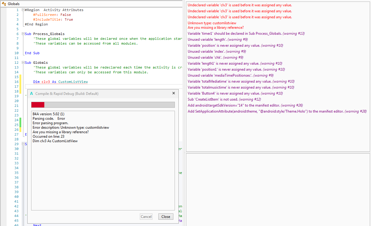 b.Initialize("button") 'all buttons click events will be handled with Sub Button_Click